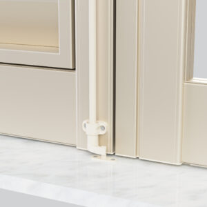 Su richiesta, è disponibile una ferramenta storica in nero o in tinta. Completa di zoccolatura scorniciata e tappo fresato, questa persiana presenta una sezione telaio di 45 mm e una sezione anta di 59 mm.