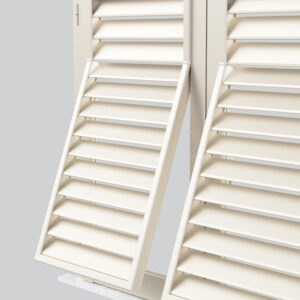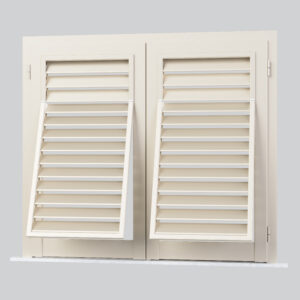 Persiana artigianale realizzata con profili scorniciati piatti che ricreano l’eleganza delle persiane in legno tradizionali delle pittoresche campagne toscane.