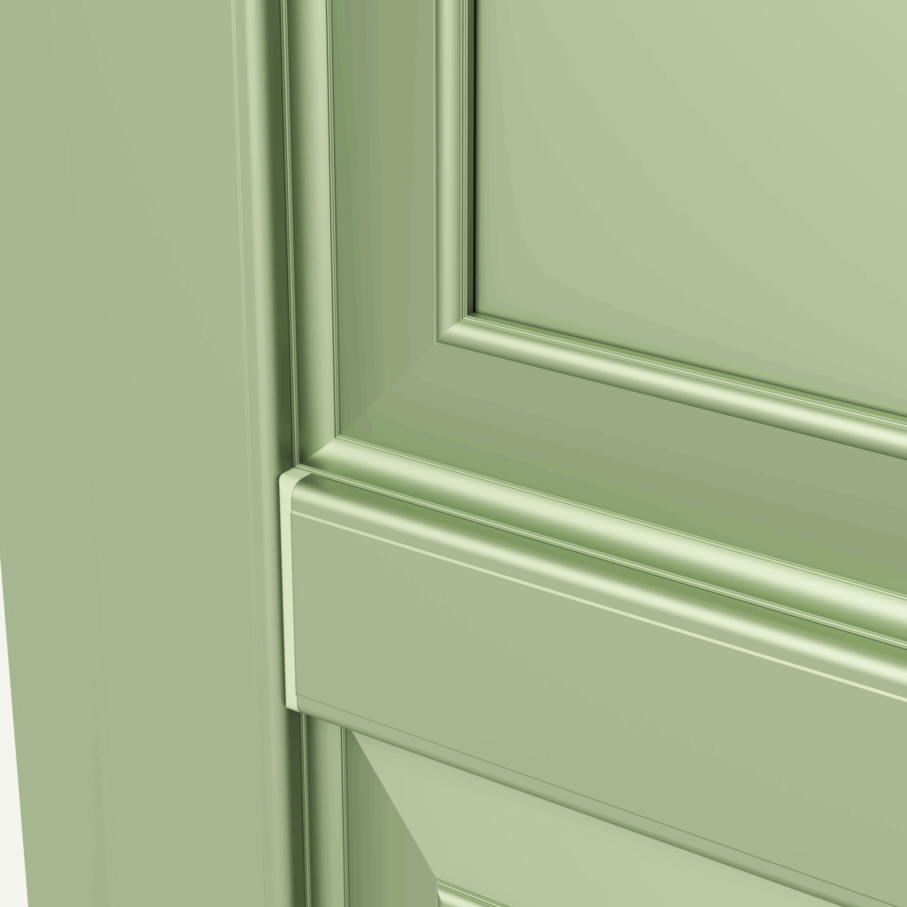 Zoccolatura di tipo 90° con tappo fresato. A richiesta ferramenta storica nera o coordinata.