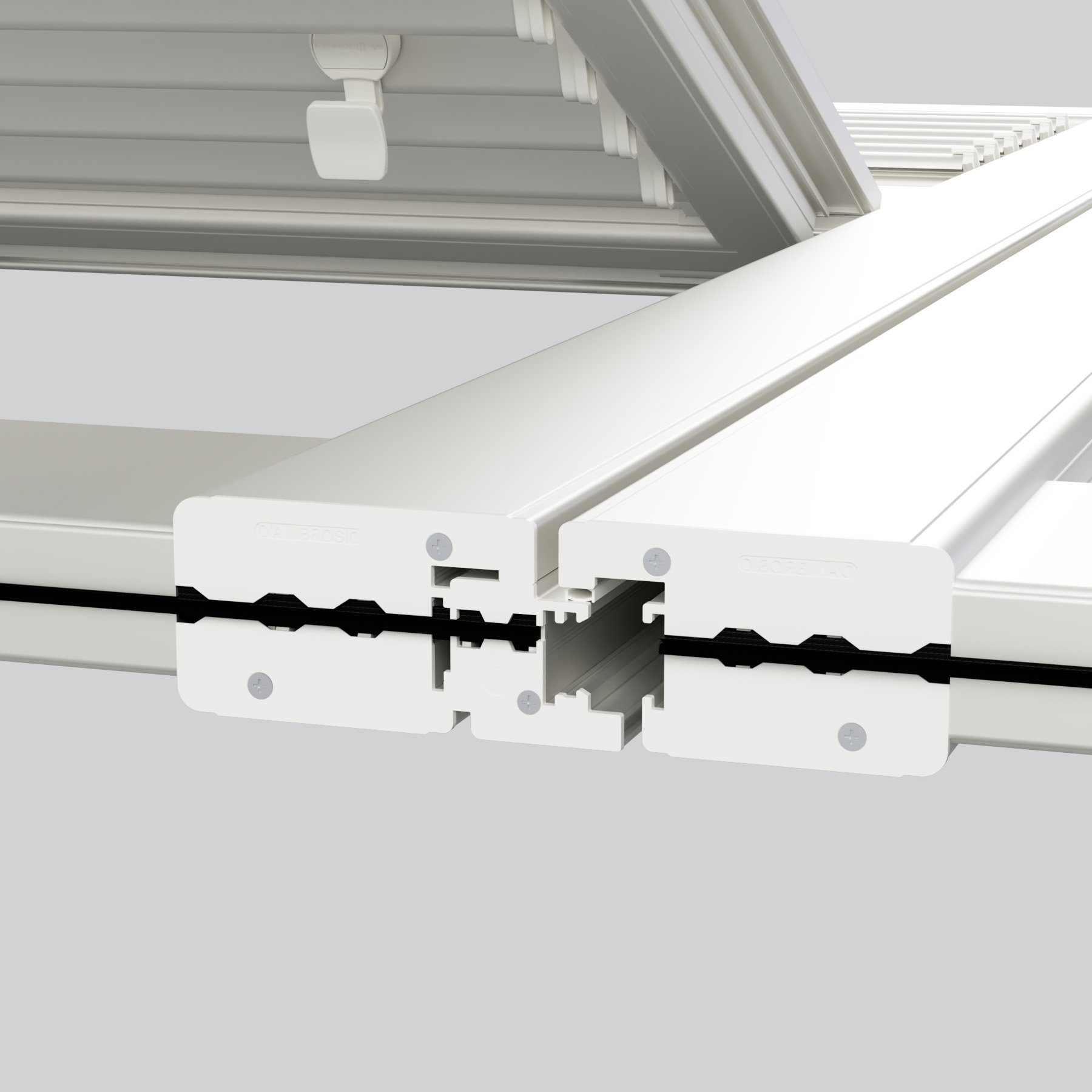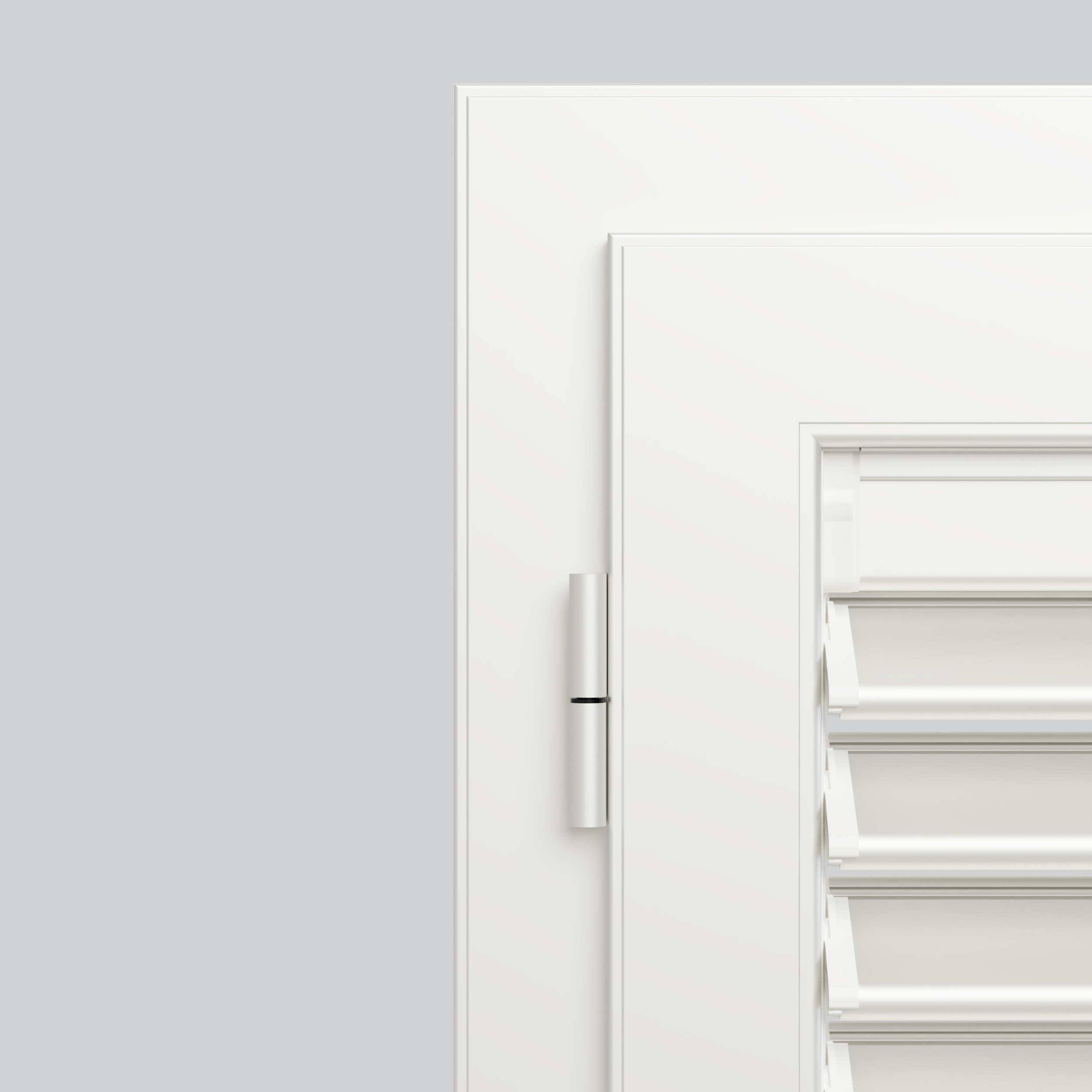 Persiana in alluminio realizzata con telaio e anta piatta leggermente scorniciati. Le sezioni la rendono di notevole robustezza ma con un design lineare e pulito che si adatta facilemente alle ristrutturazioni.